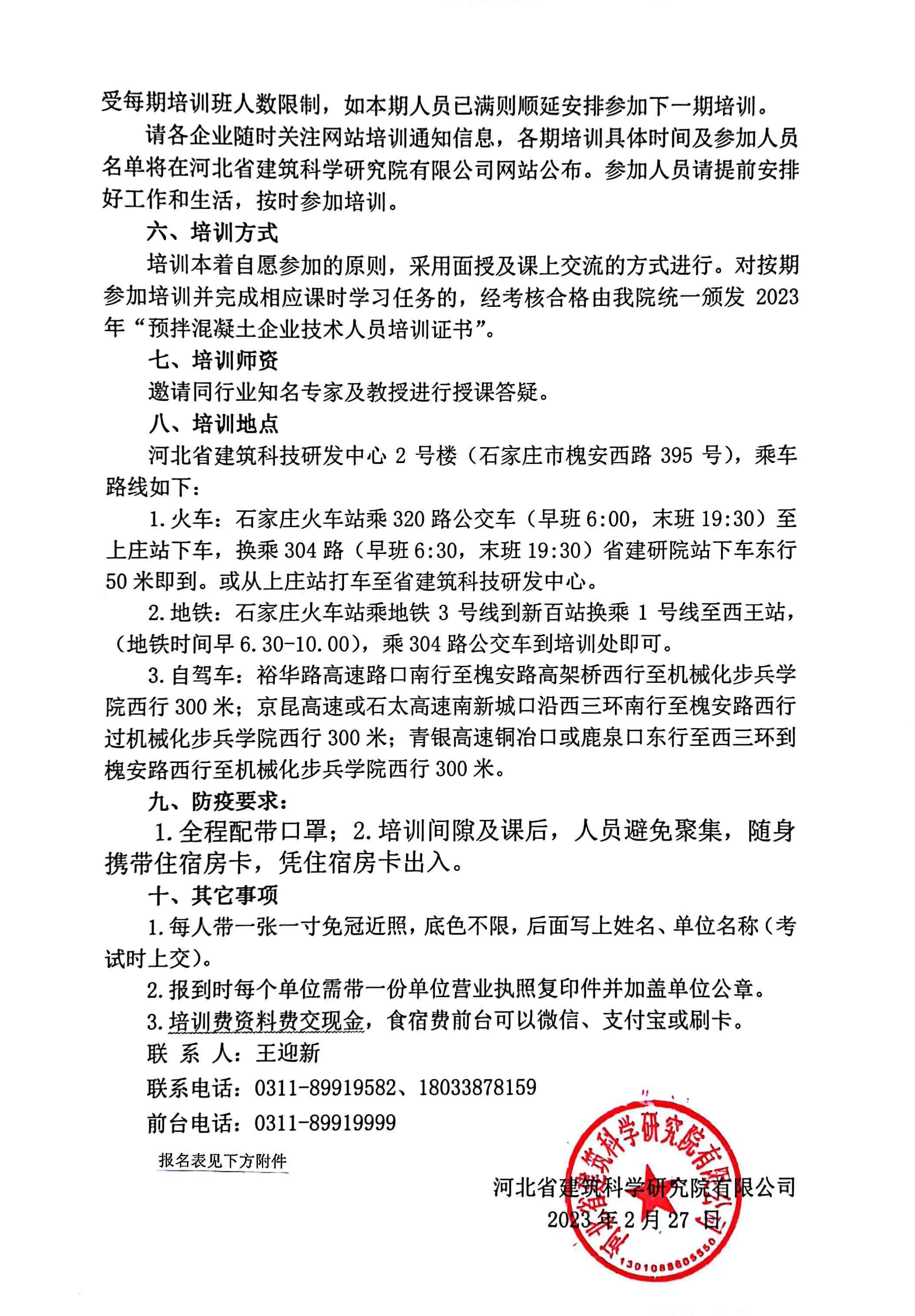 2023年預拌混凝土企業(yè)技術(shù)人員培訓班報名表