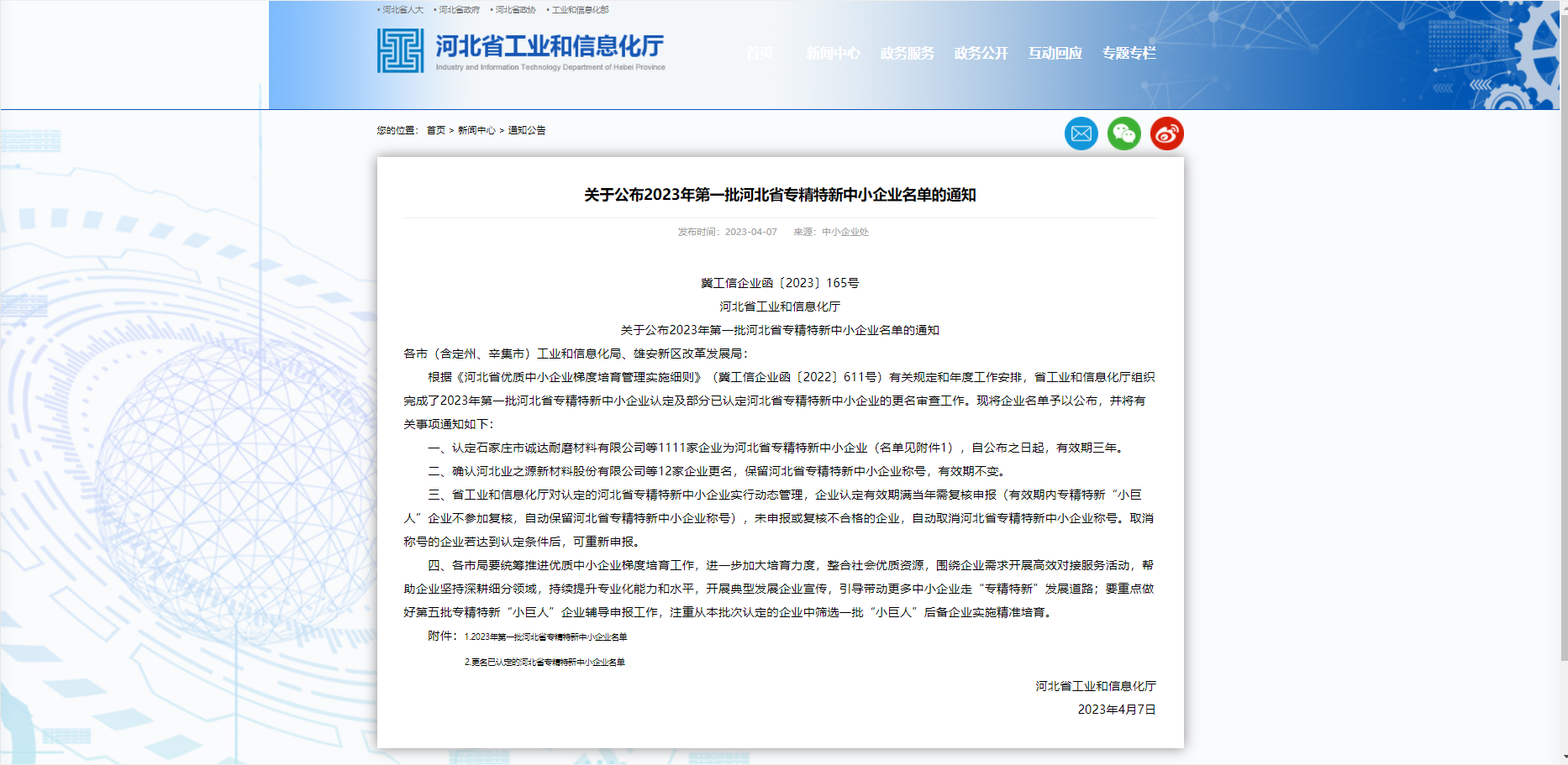 鏈接:http://gxt.hebei.gov.cn/hbgyhxxht/xwzx32/tzgg83/927696/index.html