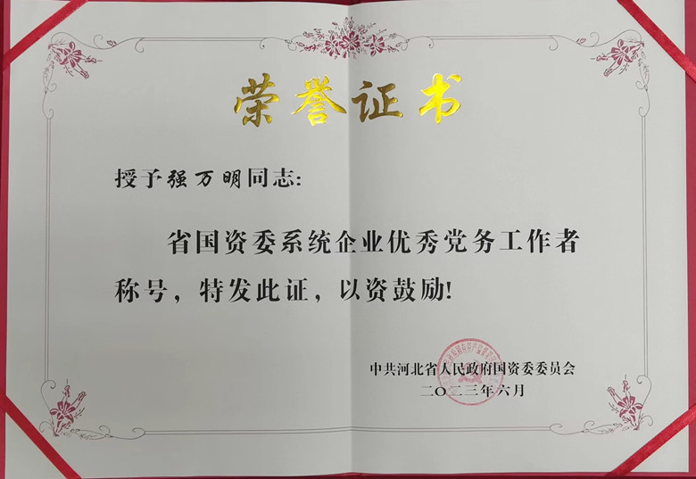 公司智能所支部委員會(huì)榮獲“先進(jìn)基層黨組織”榮譽(yù)稱號(hào);下屬公司冀科公司黨支部榮獲“黨建工作與生產(chǎn)經(jīng)營(yíng)深度融合先進(jìn)單位”榮譽(yù)稱號(hào);公司黨委書記、董事長(zhǎng)強(qiáng)萬明同志榮獲“優(yōu)秀黨務(wù)工作者”榮譽(yù)稱號(hào);公司專職黨委副書記句德勝同志榮獲“優(yōu)秀共產(chǎn)黨員”榮譽(yù)稱號(hào)。