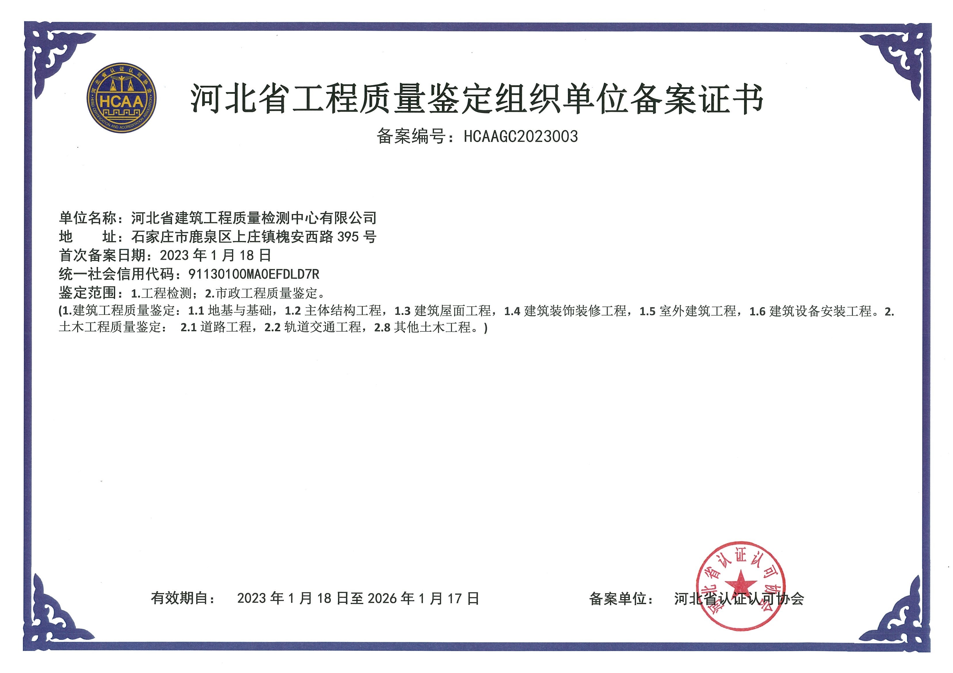 河北省建筑工程質(zhì)量檢測中心認證證書3